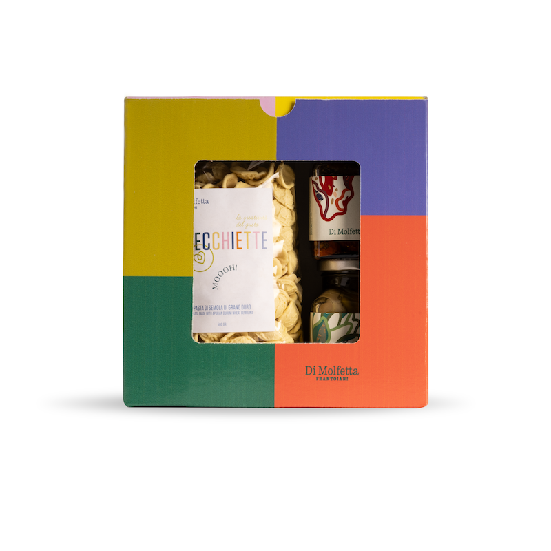 Only for Puglia Lovers è un box che profuma di casa, sole e ulivi: orecchiette, pomodori secchi e carciofi sott’olio preparati secondo ricette tradizionali. Tre specialità firmate Di Molfetta Frantoiani, per portare in tavola la semplicità e la bontà della nostra terra.